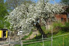Die Obstgruppe kümmert sich um alle Obstbäume im Quartierhof. Dazu gehören Apfel-, Birnen-, Zwetschgen-, Kirschen- und Mirabellenbäume. Auch 2 grosse Walnussbäume stehen auf dem Areal. Die Mittel- und Hochstamm-Obstbäume werden als Streuobst bewirtschaftet, das heisst, die Fläche wird zugleich als Weide genutzt.