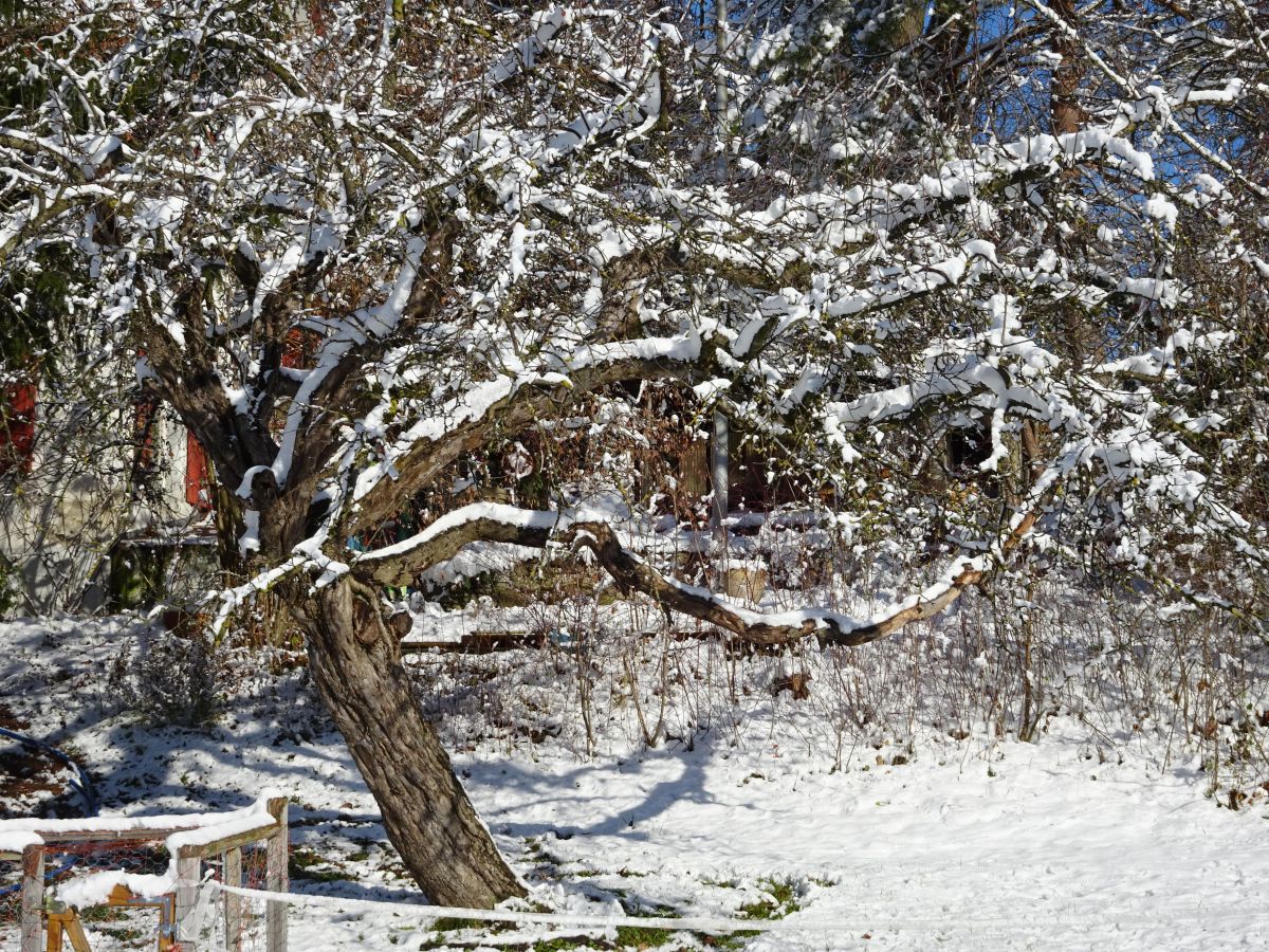 Die Obstgruppe kümmert sich um alle Obstbäume im Quartierhof. Dazu gehören Apfel-, Birnen-, Zwetschgen-, Kirschen- und Mirabellenbäume. Auch 2 grosse Walnussbäume stehen auf dem Areal. Die Mittel- und Hochstamm-Obstbäume werden als Streuobst bewirtschaftet, das heisst, die Fläche wird zugleich als Weide genutzt.